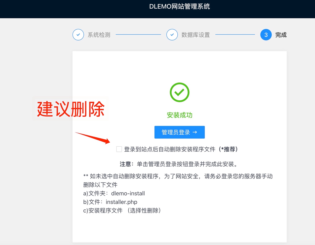 第五步:安装完成后点击管理员登录,进入后台