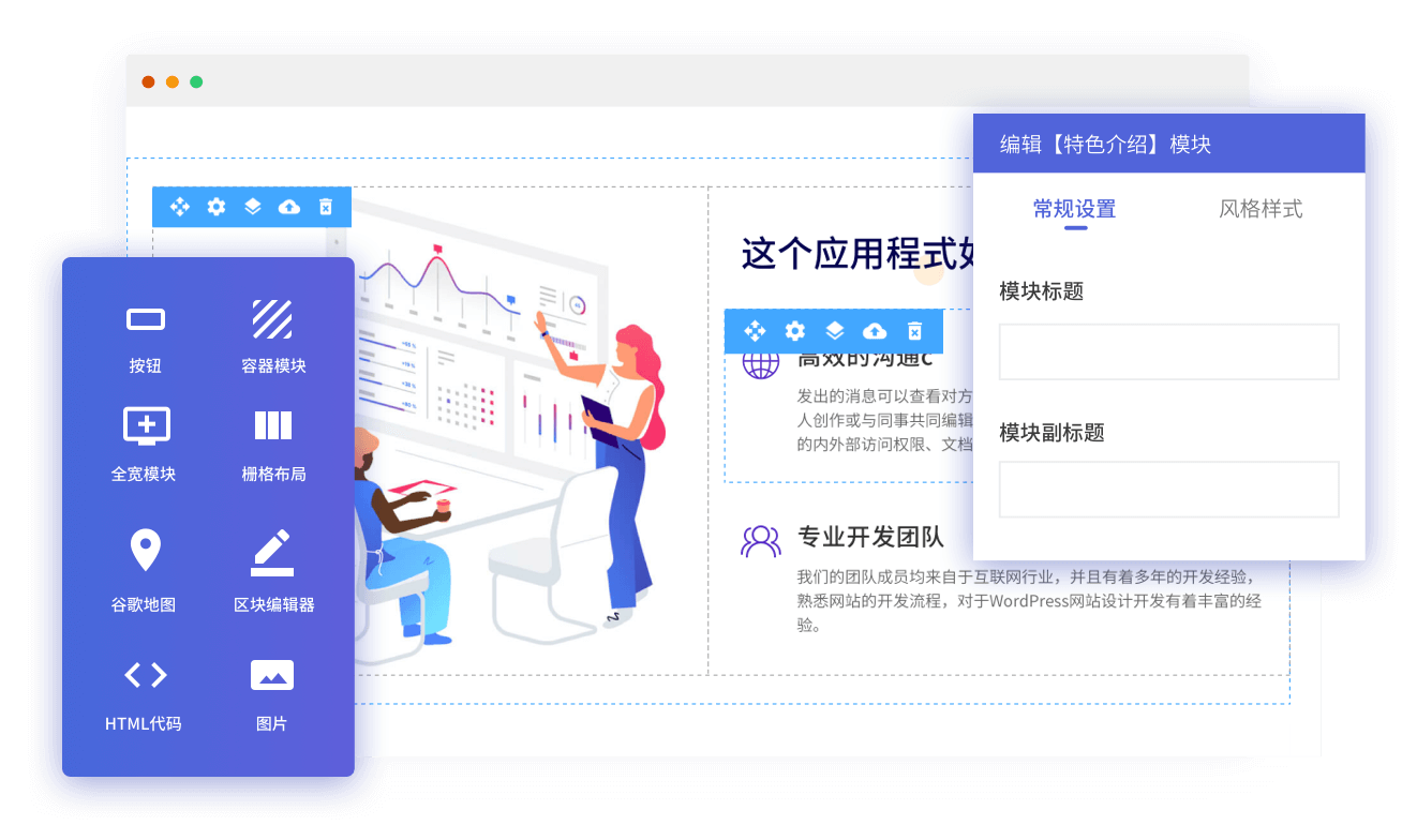 预定义组件模板库全新开发几百个不同的模板组件库,只需拖拽,点击即可完成一个全新页面的布局,实现真正的可视化操作。