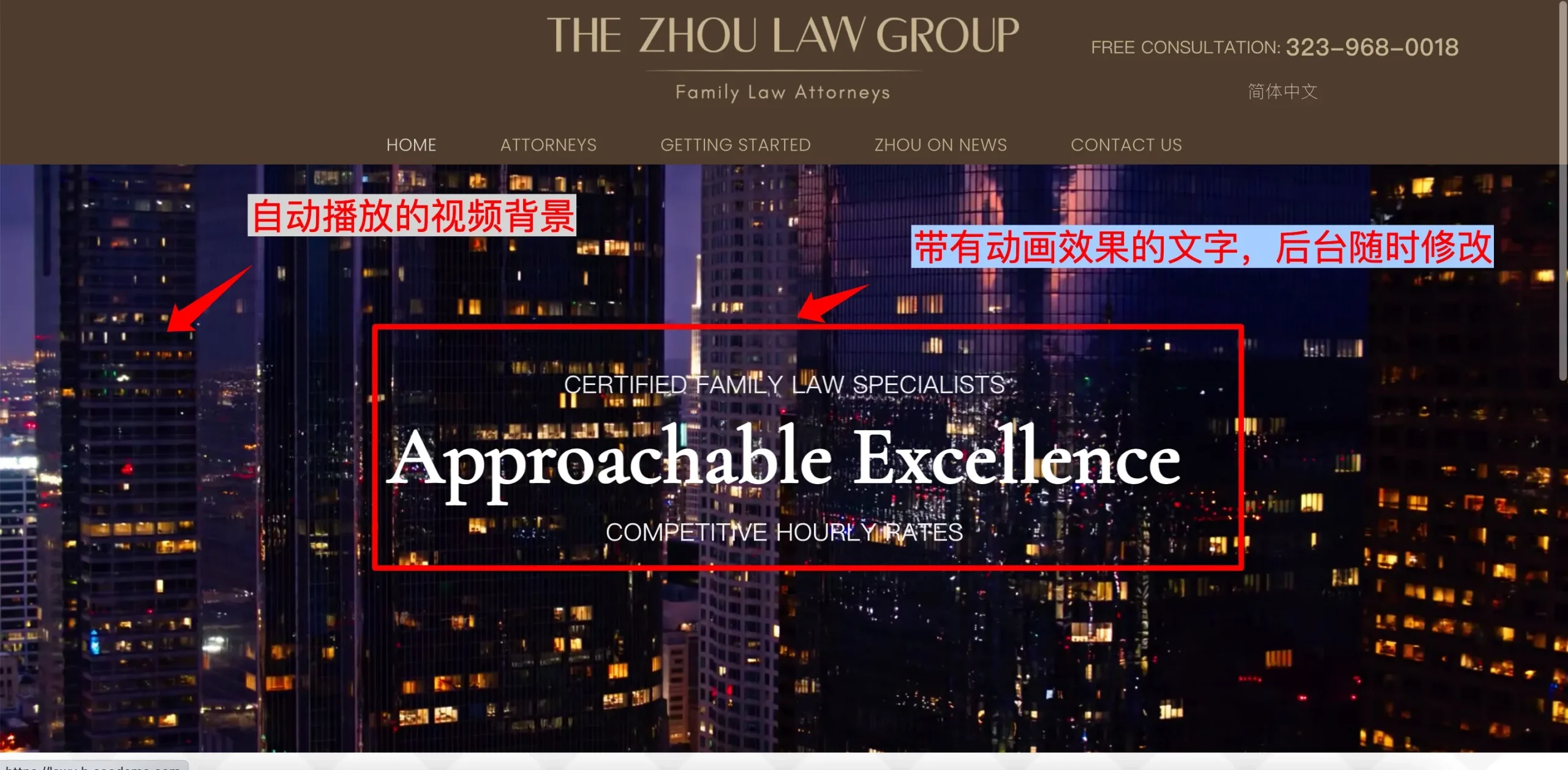视频+悬浮文案预览地址:https://lawy.b.coodemo.com/