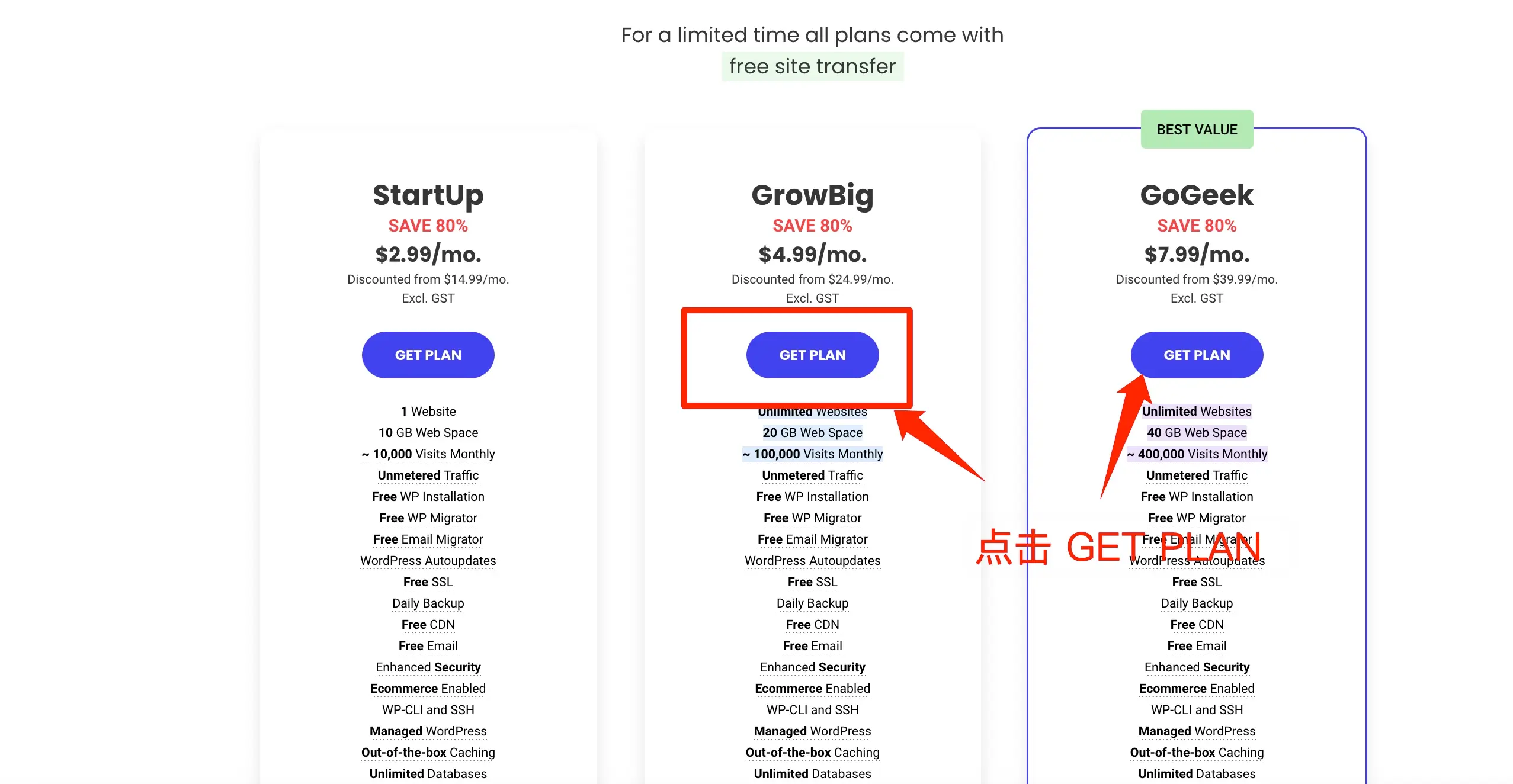 3、选择合适的套餐后,点击Get Plan 进入下面页面
