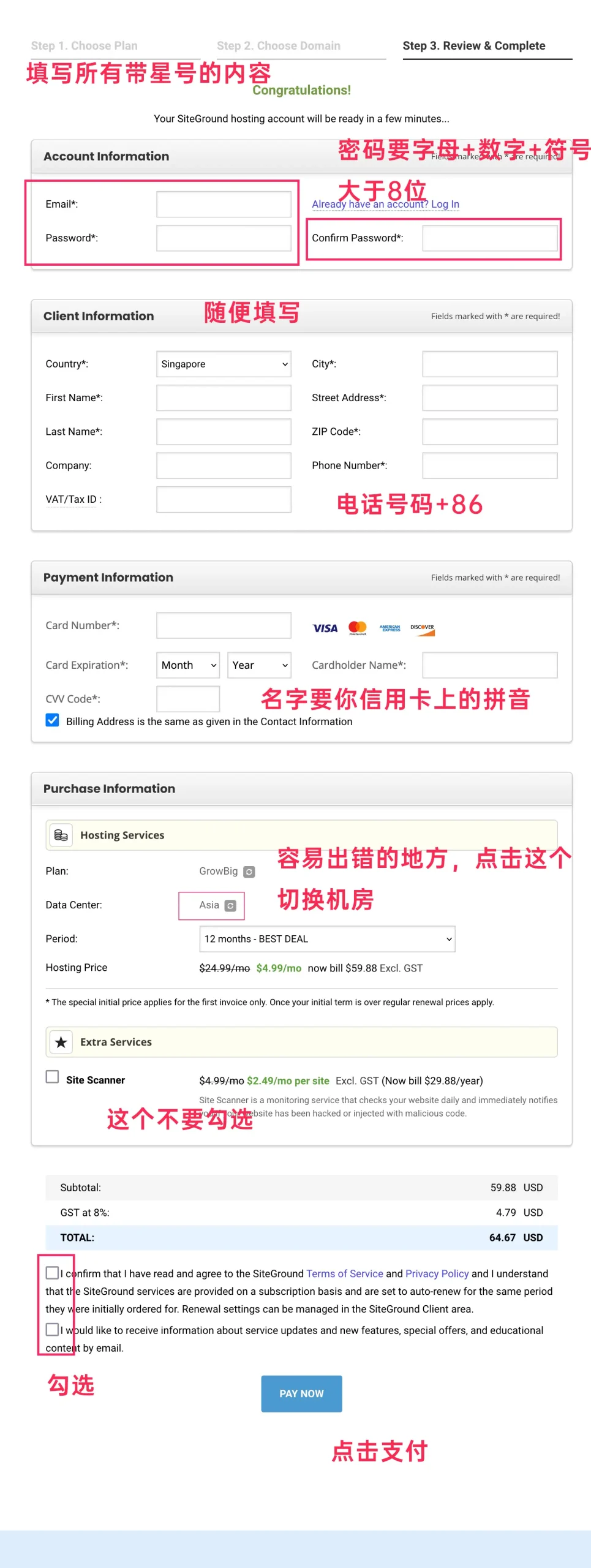 至此,SiteGround 的购买完成